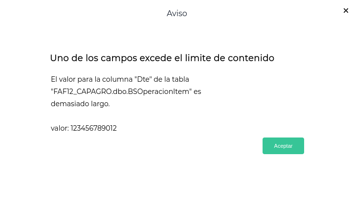 La razón por la cual aparece dicho aviso, tiene su fundamento en que la capacidad máxima de caracteres en la solapa “Dte” es de 12.