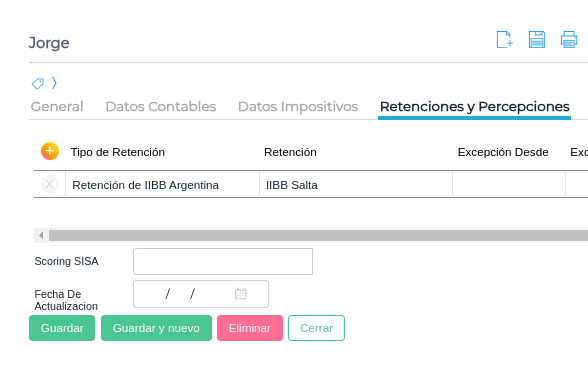 - Retenciones en proveedor: El mismo debe tener solo las retenciones para monotributista ( sin IVA y sin ganancias ).