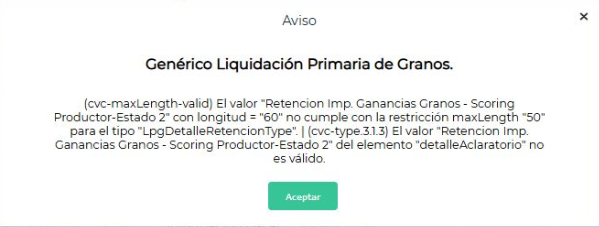 “Retencion Imp. Ganancias Granos - Scoring Productor-Estado 2”, tiene 60 caracteres (incluye los espacios).