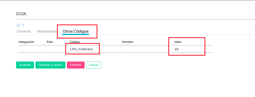 Acción: Asegúrate de que el producto que estás liquidando esté relacionado con una especie de grano. Esto se verifica en la solapa “Granos” del producto.