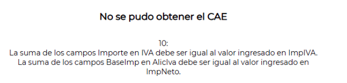 En una factura Liquido Producto, al intentar obtener CAE sale este mensaje: