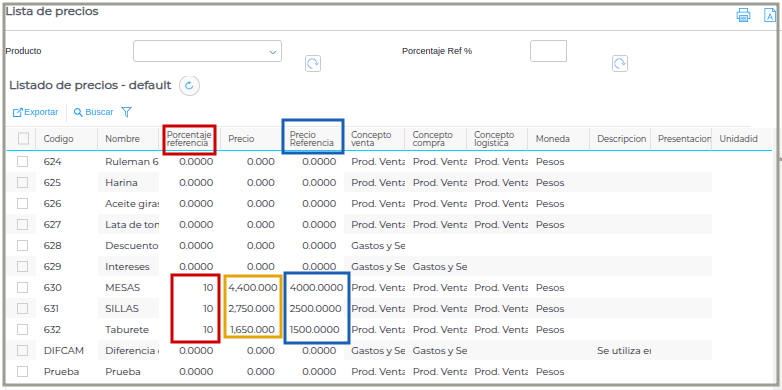 - Creación de Precios con lista de referencia