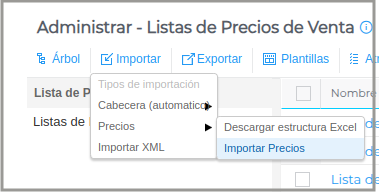Dentro de las listas, existe la opción de importar la lista de precios para agilizar el proceso de forma masiva o actualizar los precios.