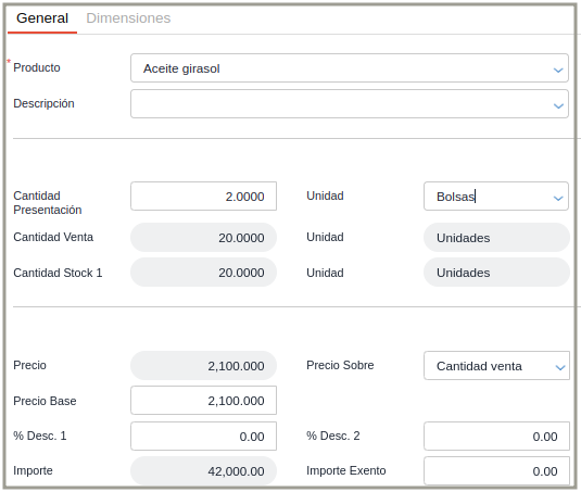 Nota: el precio indicado corresponde a cada unidad que se incluya dentro de la presentación. Es decir que a la hora de realizar una transacción lo que hará el sistema es multiplicar el precio configurado por el multiplicador que tiene la presentación configurada en el producto.