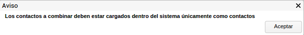 En caso de seleccionar un contacto que está cargado en el sistema con otro aspecto, (Empleado por ejemplo) el sistema emite el siguiente mensaje de error.