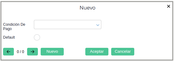 Condición de pago: en este campo se indica la forma predeterminada que se le asigna al cliente para el cobro de las facturas. La condición a ingresar debe ser ingresada previamente en el maestro “Condiciones de Pago”.