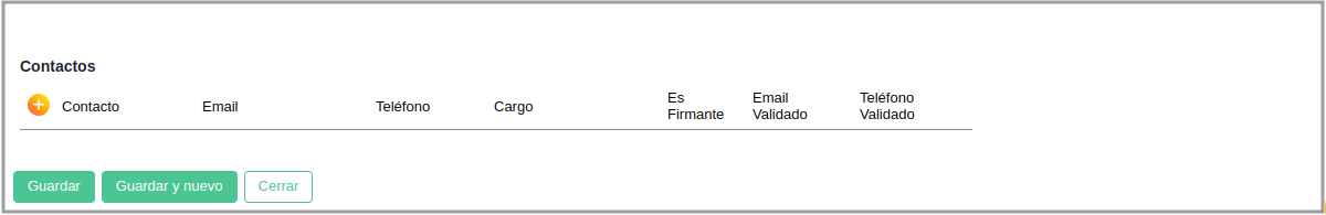 En esta solapa pueden cargarse aquellos contactos que estén relacionados con el cliente, sirve para brindar información más detallada sobre el mismo. Los contactos deben cargarse en el maestro de Contactos, se accede a través de Menú → CRM → Contactos.