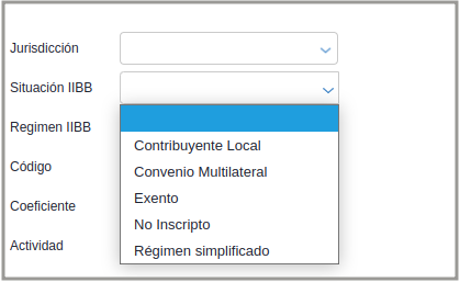 Al seleccionar se habilita la opción para completar la jurisdicción y la situación de IIBB.