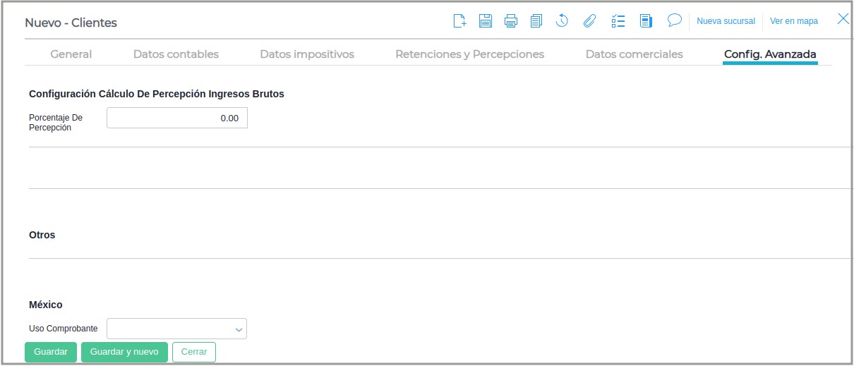 Porcentaje Percepción IIBB: indica el porcentaje de percepción de Ingresos Brutos del cliente.