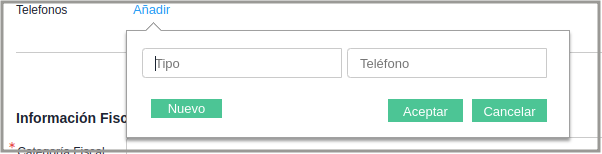 Tipo: identifica el tipo de teléfono creado (Comercial, Legal, Fiscal, etc.) El mismo es de edición libre.