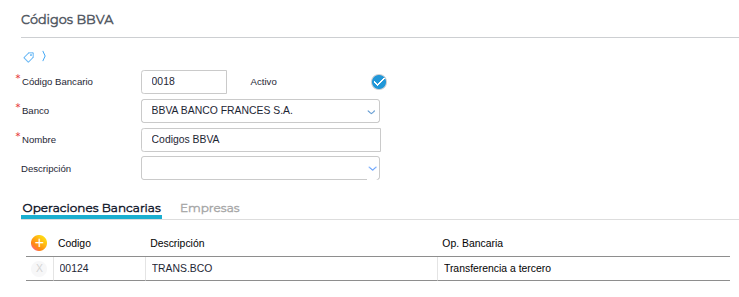Permite asociar operaciones bancarias al Código Bancario.