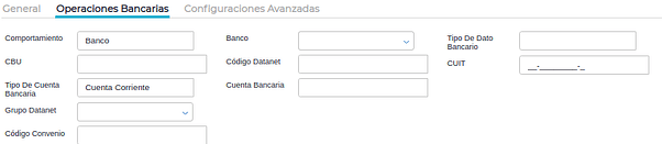Al activar este check se visualizará la solapa Operaciones bancarias.