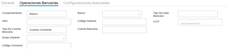 Código DataNet: número de cuenta en formato DataNet. El mismo es utilizado para identificar una cuenta con el código correspondiente a los archivos enviados de DataNet para conciliaciones bancarias o pagos. Por ejemplo, cuando se incorporan los gastos durante la conciliación bancaria a partir de un archivo de DataNet, los asientos contables sólo se generarán si existe una cuenta identificada con el mismo código de la operación.