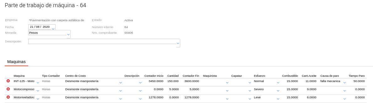 Al momento de registrar el trabajo de la máquina, podremos seleccionar el ítem de esfuerzo que corresponda en función a lo creado en el maestro.