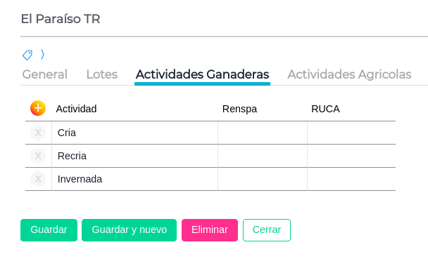 También existe la posibilidad de indicar el número de RENSPA (Registro Nacional Sanitario de Productores Agropecuarios), propio de cada actividad, así como el correspondiente número de RUCA (Registro único de la cadena Agroalimentaria) para el uso del web service pecuario.