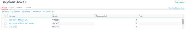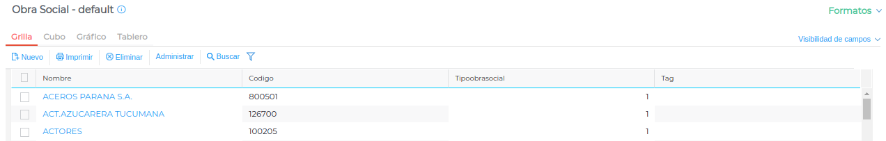 Ingresar a la edición de obras sociales, el sistema te presenta la lista de las mismas.