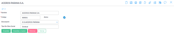 Nombre: representa el nombre de la obra social que se está creando. El mismo se visualizará en los selectores de obras sociales, como así también en diferentes reportes y procesos en donde intervenga.