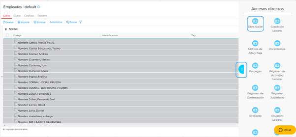 Menú → Gestión Capital Humano → Administración de Personal → Empleados → Accesos Directos