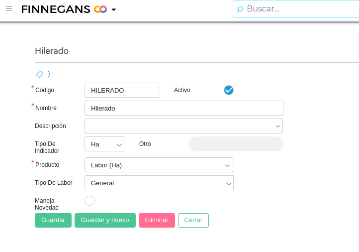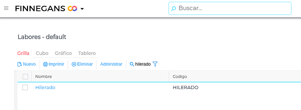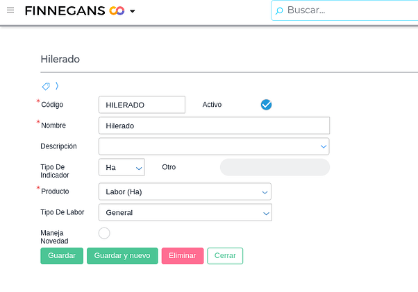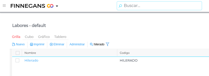 Para este ejemplo, en el maestro de labores se encuentra “Hilerado”.