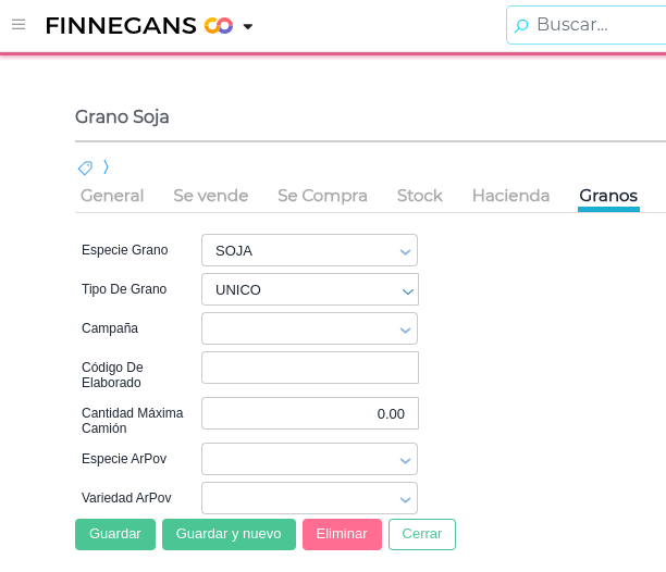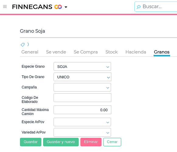 - Especie grano: Proviene de una tabla de tipificación granaria de AFIP y que hace referencia al código y nombre de la especie. Proviene del maestro de especies provisto por el sistema.