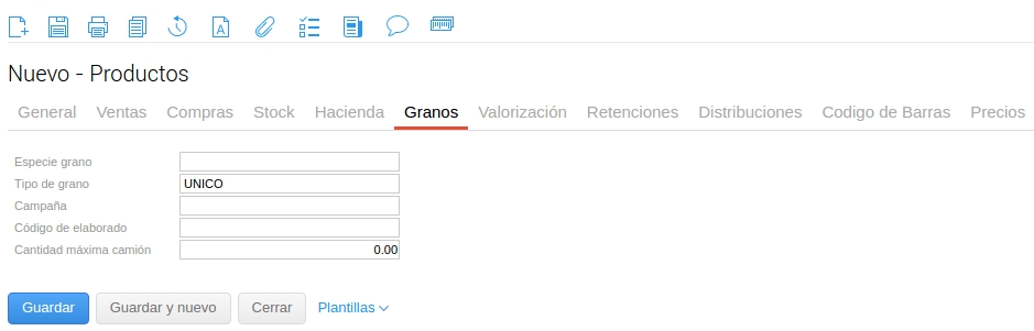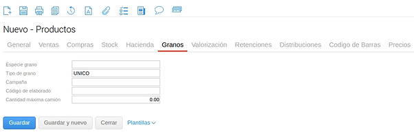 Especie Grano: este campo es meramente informativo, permite indicar, si se agrega un nuevo grano, a qué especie pertenece el mismo.
