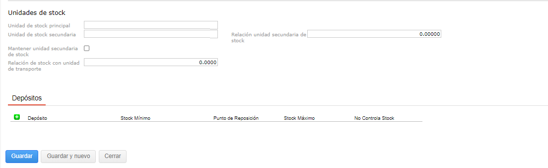 - El campo de Cantidad de stock 2 se mostrará sólo si el producto tiene configurada una unidad de stock secundaria. Si no, se verá sólo la Cantidad de stock 1.