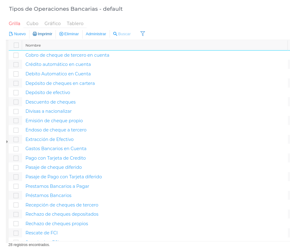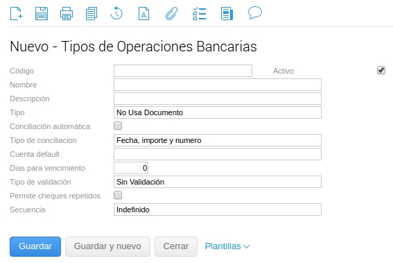 Desde esta configuración se podrán dar de alta todos los tipos de operaciones bancarias.