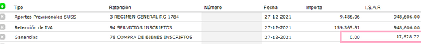 - Bruto: determina el I.S.A.R. como el importe del comprobante sin impuestos.