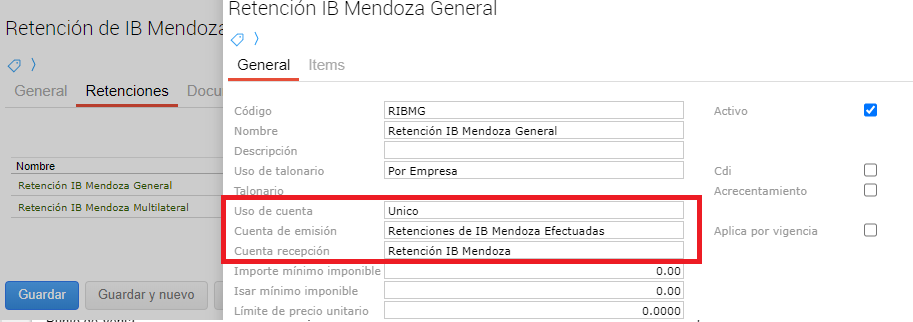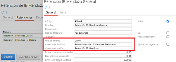 Se tenía configurada para el tipo de retencion IB Mendoza la retención IB Mendoza General, la cual tenía asignadas cuentas en modo único.