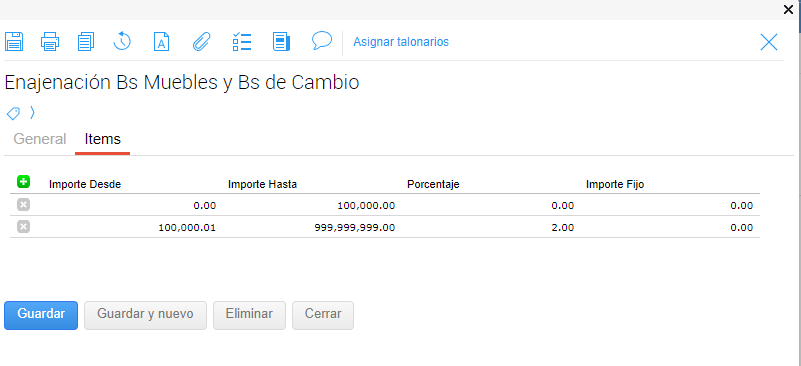 La asignación de talonarios se realiza desde el botón Asignar Talonarios ubicado en la toolbar.