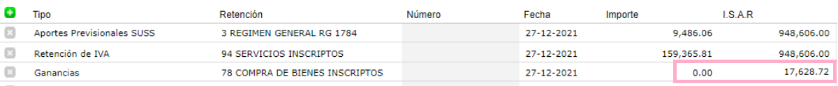 ISAR mínimo Imponible: si el ISAR es menor al mínimo especificado aca, no se calcula la retención.