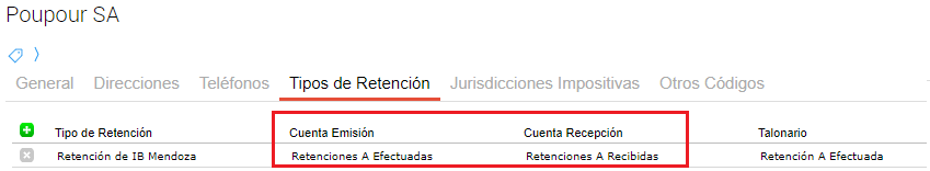 Cuenta recepción: define la cuenta a utilizar cuando se reciben retenciones de este tipo.