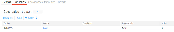 Al ingresar a la solapa, el sistema presenta la lista de sucursales que posee la empresa. Desde esta vista es posible agregar nuevas sucursales, editar o eliminar existentes.