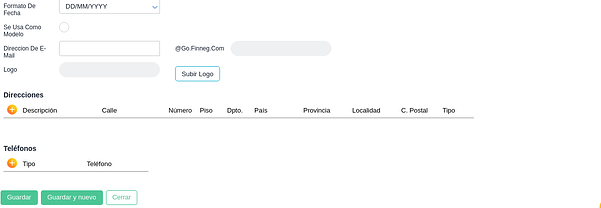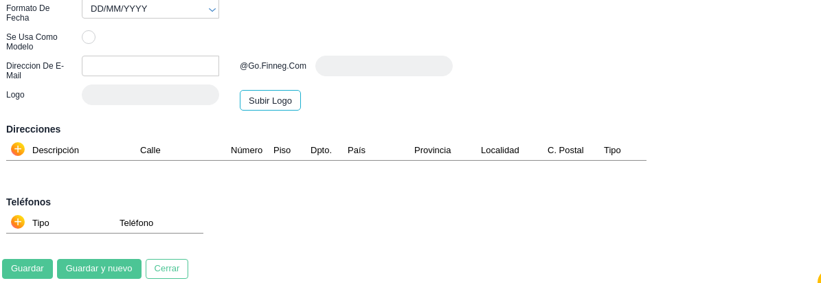 Dirección de mail: se podrá indicar el mail corporativo de Finnegans GO.