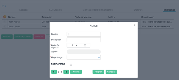 Es posible agregar grupo de imágenes, principalmente para firmas, como por ejemplo, para firmar los recibos de sueldos.