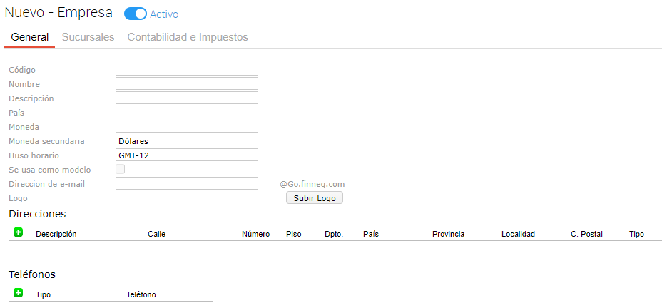 Activo: indica si la empresa creada se encuentra o no disponible para su utilización.