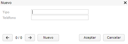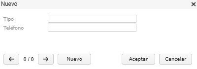 Tipo: identifica el tipo de teléfono creado (Comercial, Legal, Fiscal, etc.) El mismo es de edición libre.