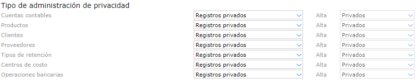 Para la configuración de los mismos, previamente deben asignarse desde el maestro de Configuración General la administración por registros privados.