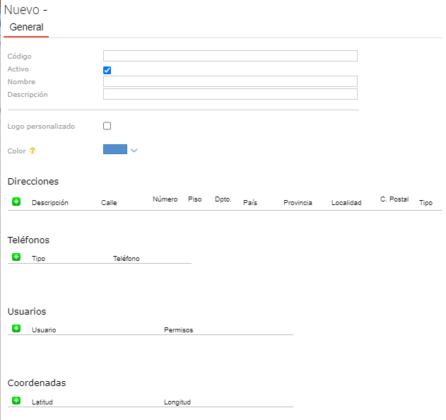 En este apartado se editan las distintas direcciones de una Sucursal. Estos datos figuran a modo informativo. Se debe apretar el botón