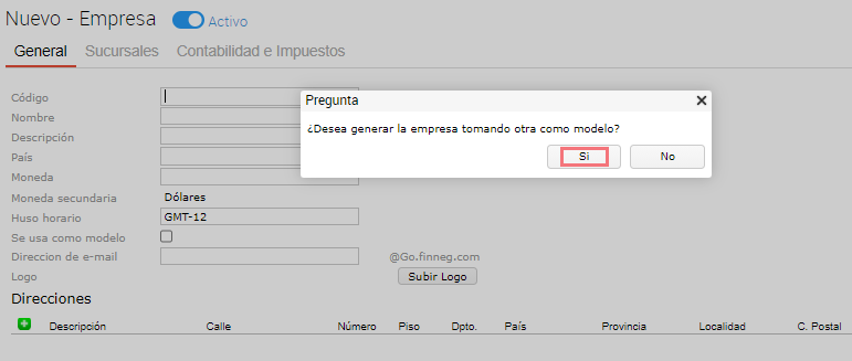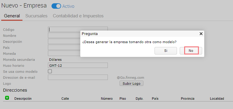 Al crear una empresa en el sistema Finnegans , se crea automáticamente una sucursal con el mismo nombre.