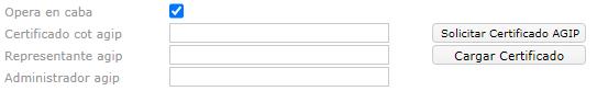 Administrador agip: este campo contiene los datos que son requeridos por AGIP al momento de tramitar el certificado de COT.