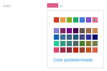 Color: muestra una paleta preconfigurada donde se puede seleccionar el color que se quiera para identificar a la sucursal. Se debe hacer doble clic para seleccionar el color.