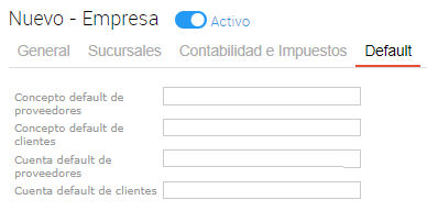 Concepto default de proveedores: desde este selector se podrá seleccionar el concepto para los proveedores de la empresa. Con esta configuración, al dar de alta un nuevo proveedor, se autocompletará el campo Concepto. En el maestro de proveedores este campo podrá ser editado. Al dar de alta una nueva empresa está preconfigurado el concepto Proveedores, el cual podrá ser editado.