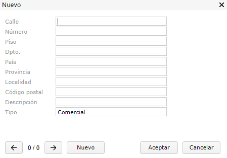 Descripción: identifica el tipo de dirección creada (Comercial, Legal, Fiscal, etc.). La misma es de edición libre.