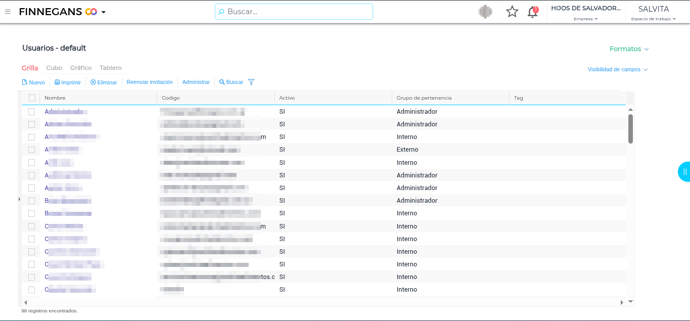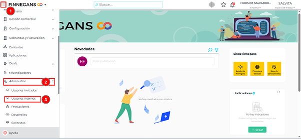 El usuario administrador debe dirigirse al Menu → Administrar → Usuarios internos
