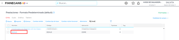 Dentro de “Prestaciones” buscamos “Deals”