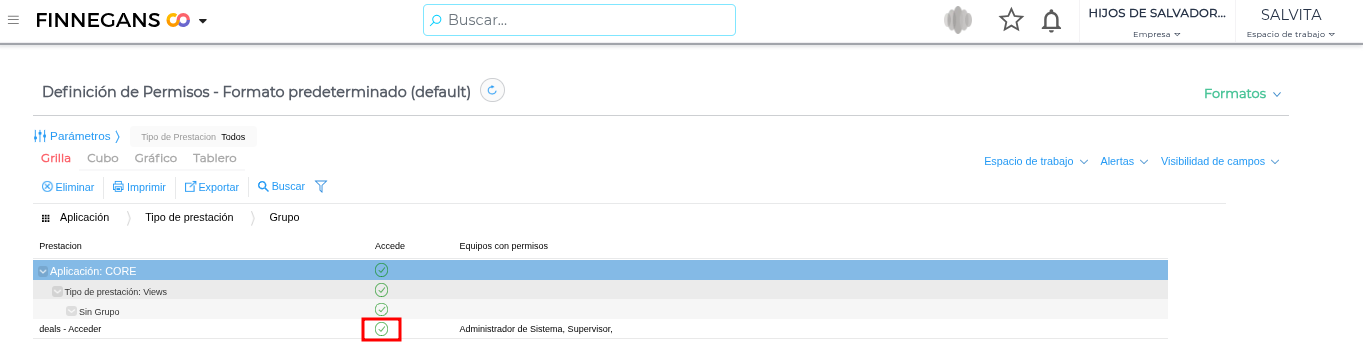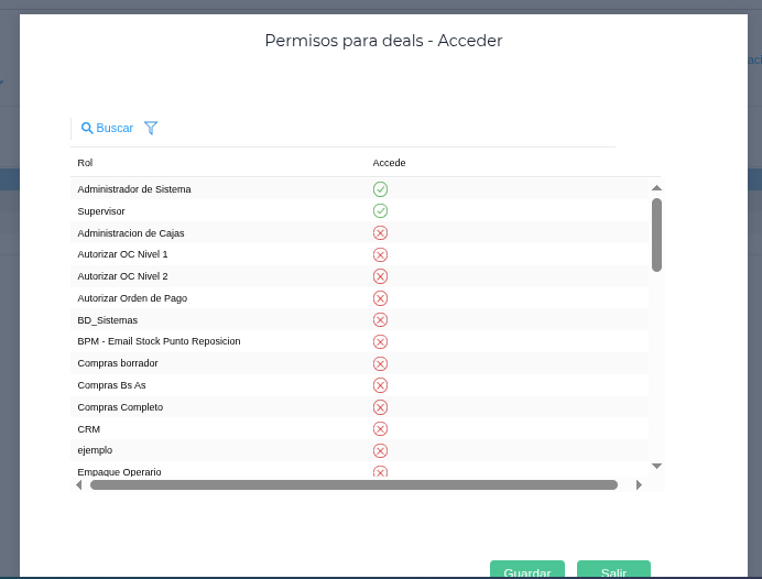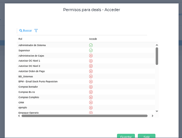 Adicionalmente, si queremos que Deals pueda ser utilizado por otros equipos además de “Supervisor” y “Administrador”, es posible modificar los permisos de acceso