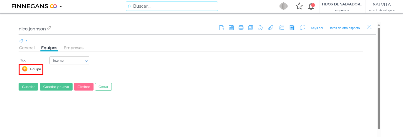 Nos dirigimos a la sección de “Equipos”