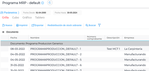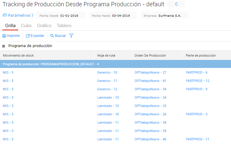 - Tracking de producción desde programa MRP