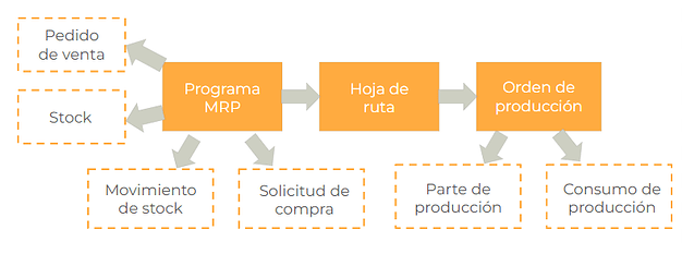 Como se observó en el diagrama, las cantidades a producir que se ingresan al proceso pueden originarse a partir de pedidos de venta (generados con anticipación) o por requerimientos puntuales para asegurar la disponibilidad de stock.